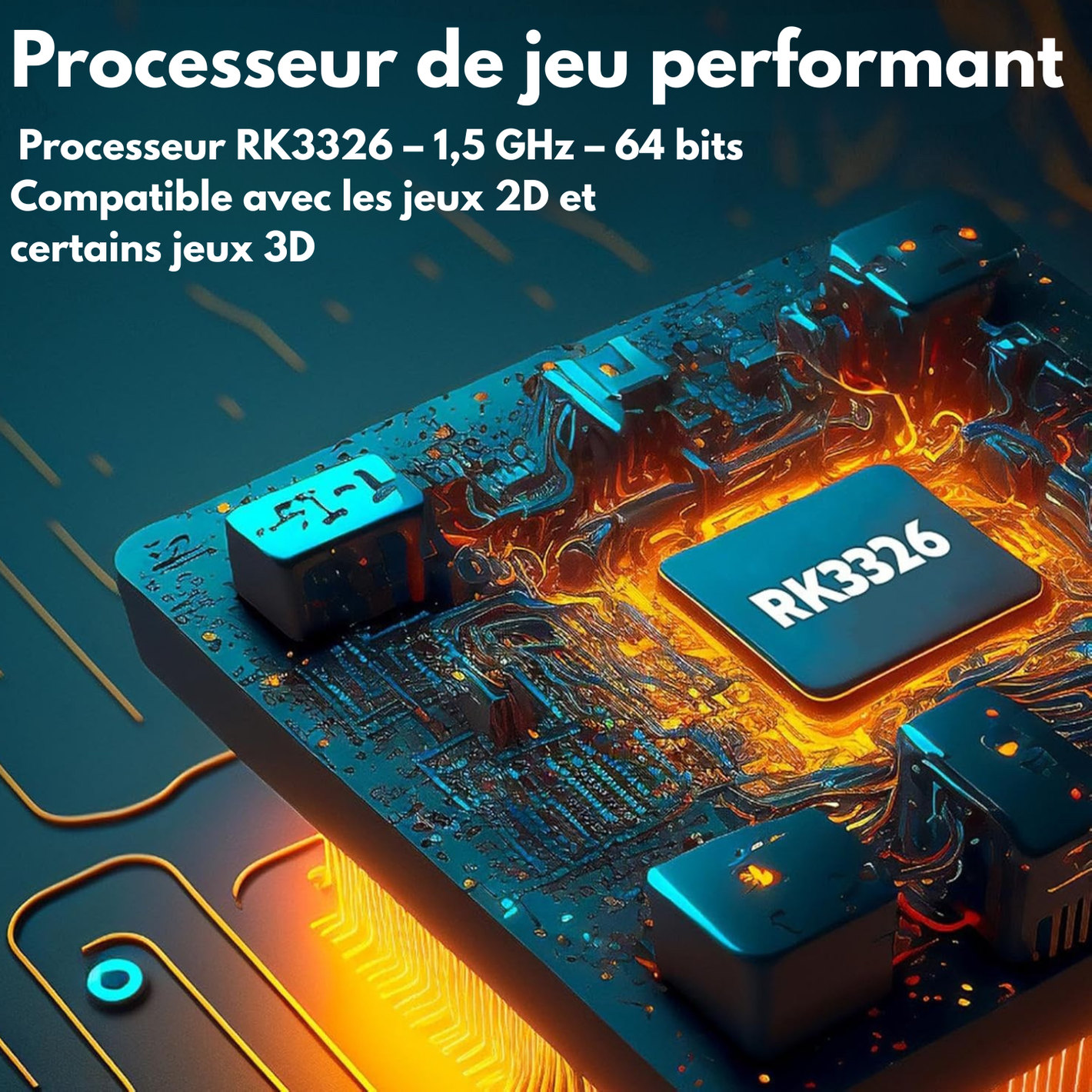 Équipée d’un processeur RK3326 quad-core 64 bits cadencé jusqu’à 1,5 GHz, les consoles offre des performances stables pour les jeux rétro.